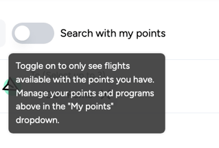 5. Once you've added your points, you can toggle the Search with my points option at the top of the flight search results page. Now, you'll only the flights you can book with your available points!