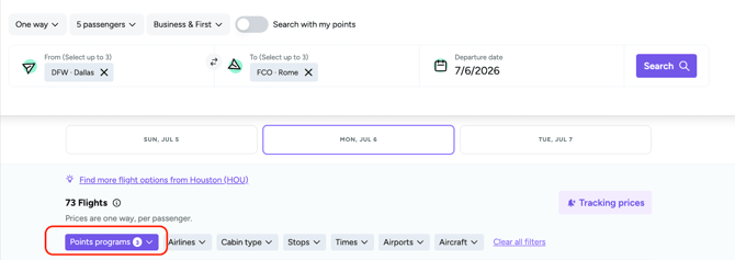 Tailoring your flight search to match your point balances and loyalty programs