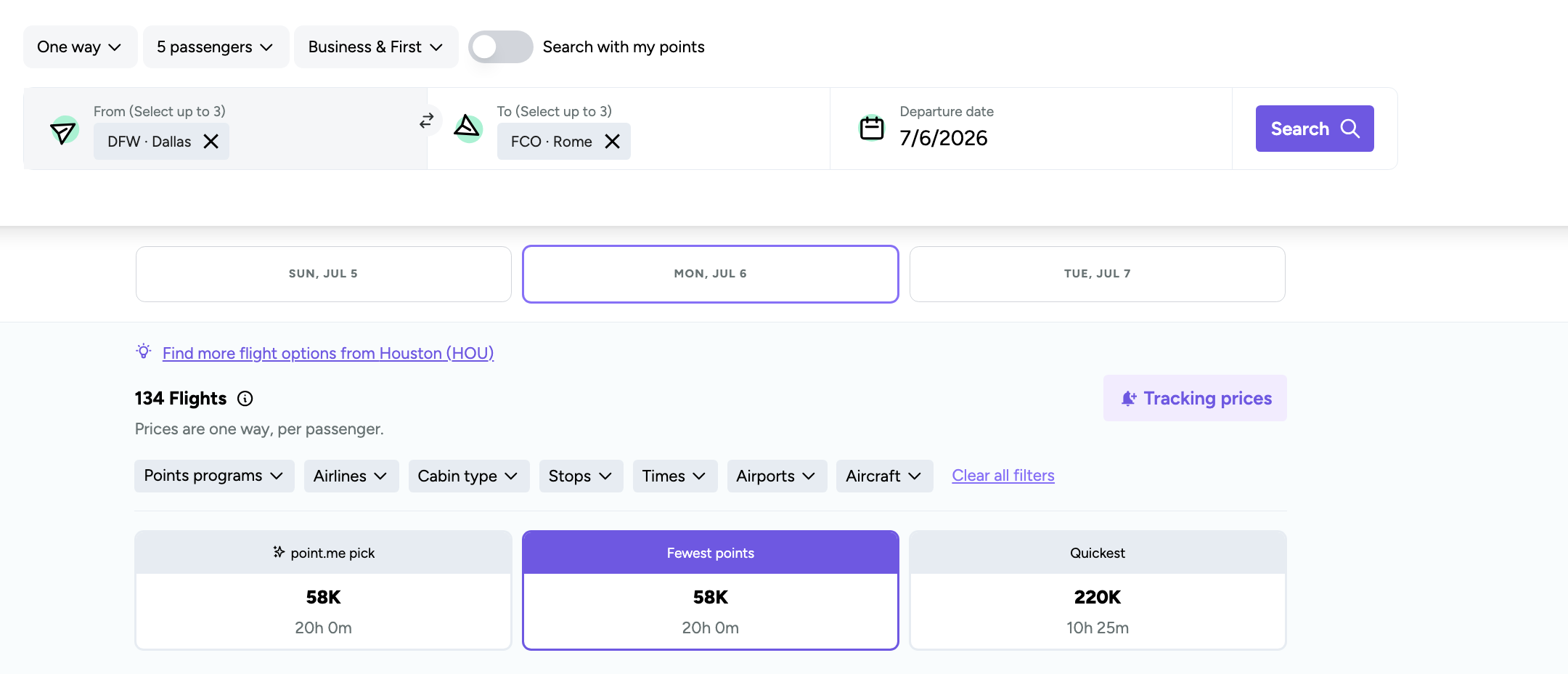To find flights, we recommend sorting results by ‘Fewest points" from the 3 filter options displayed below.